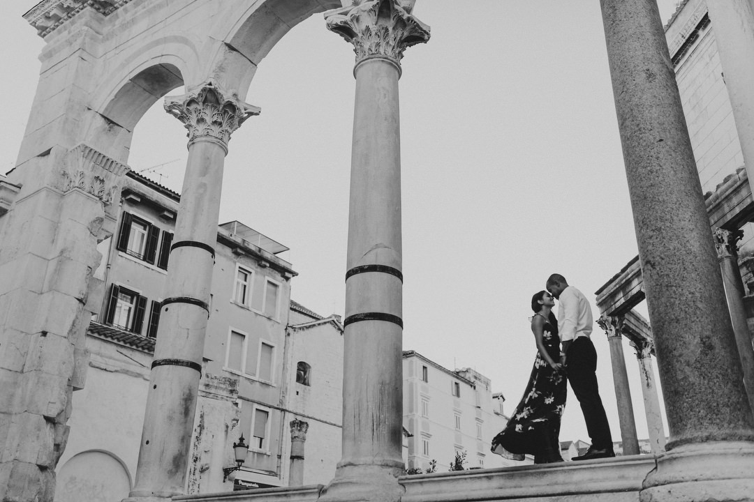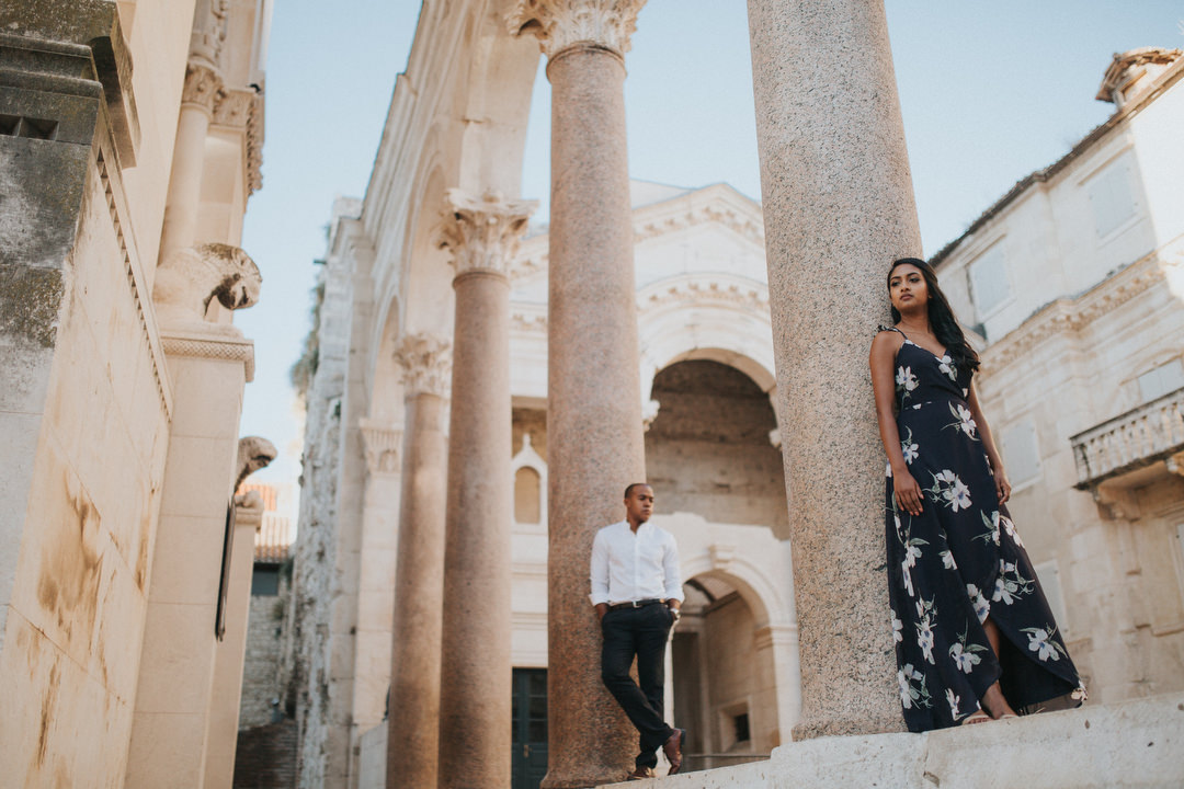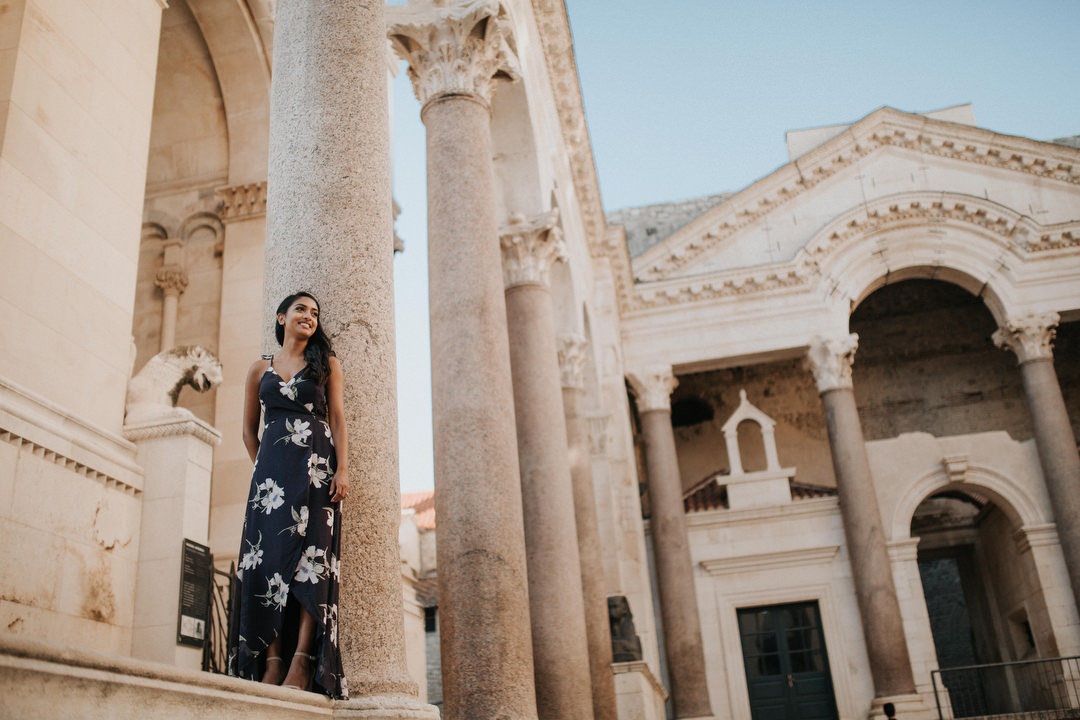 I was so exited and happy to meet them on a beautiful morning so we can explore the city together. We started the photo shoot with a walk on the Riva harbor, and then on the famous Diocletian’s Palace square with almost no people what’s a really rare occasion. After that, our next stop was the Sveti Jere Church with a beautiful view to the Adriatic Sea.